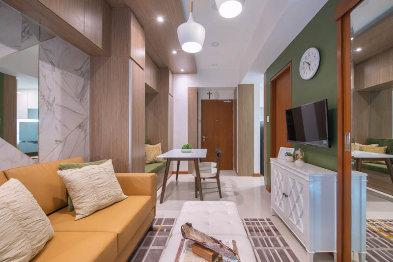 Designed for a young couple, this one-bedroom space radiates a lively and vibrant atmosphere. The interior is adorned with playful accents of green and canary yellow, injecting a fun and energetic vibe into the design. With a focus on practicality, the layout maximizes the limited space, incorporating ample storage solutions for daily essentials and more. This dynamic and spirited setting is the perfect reflection of the clients' boundless energy and zest for life.