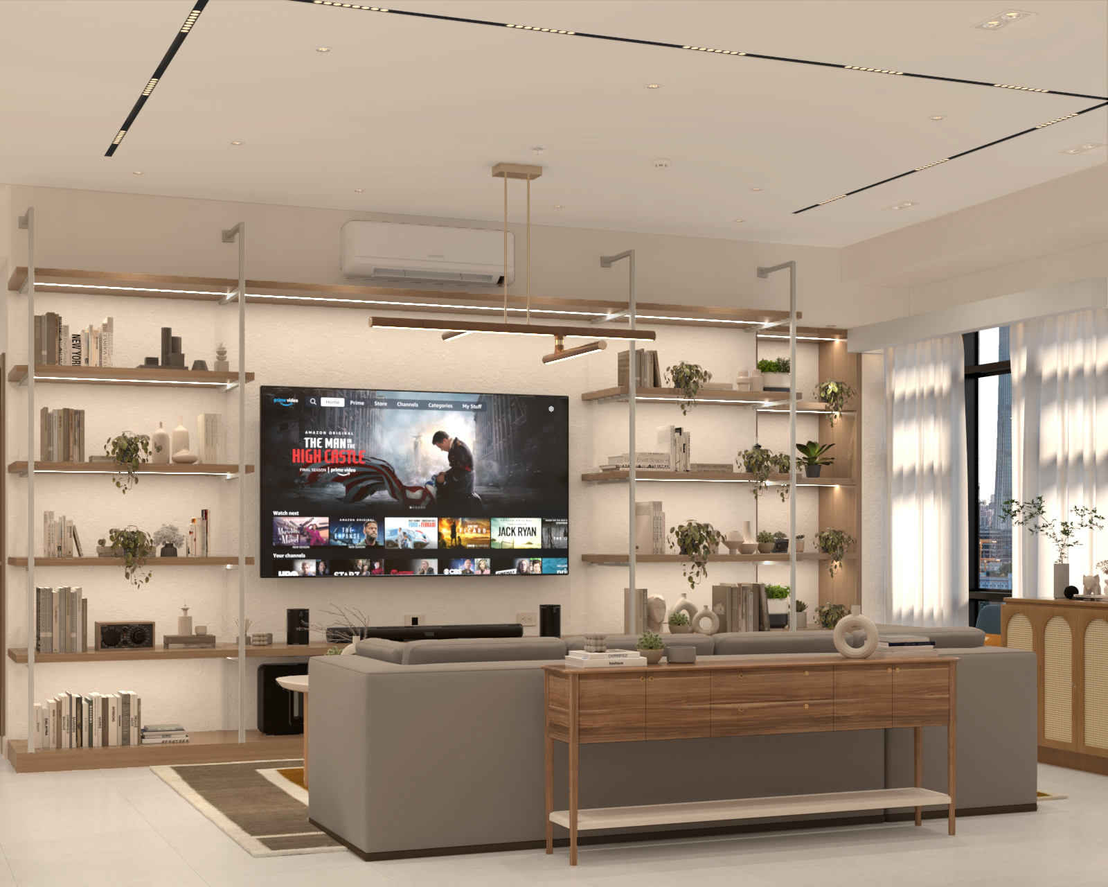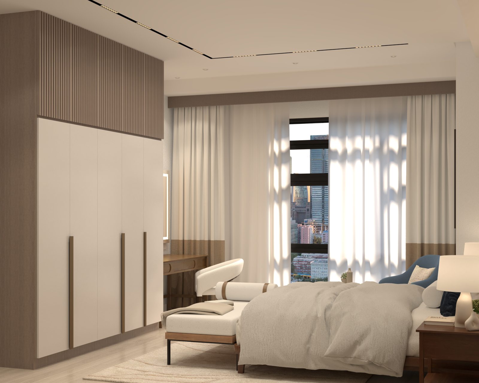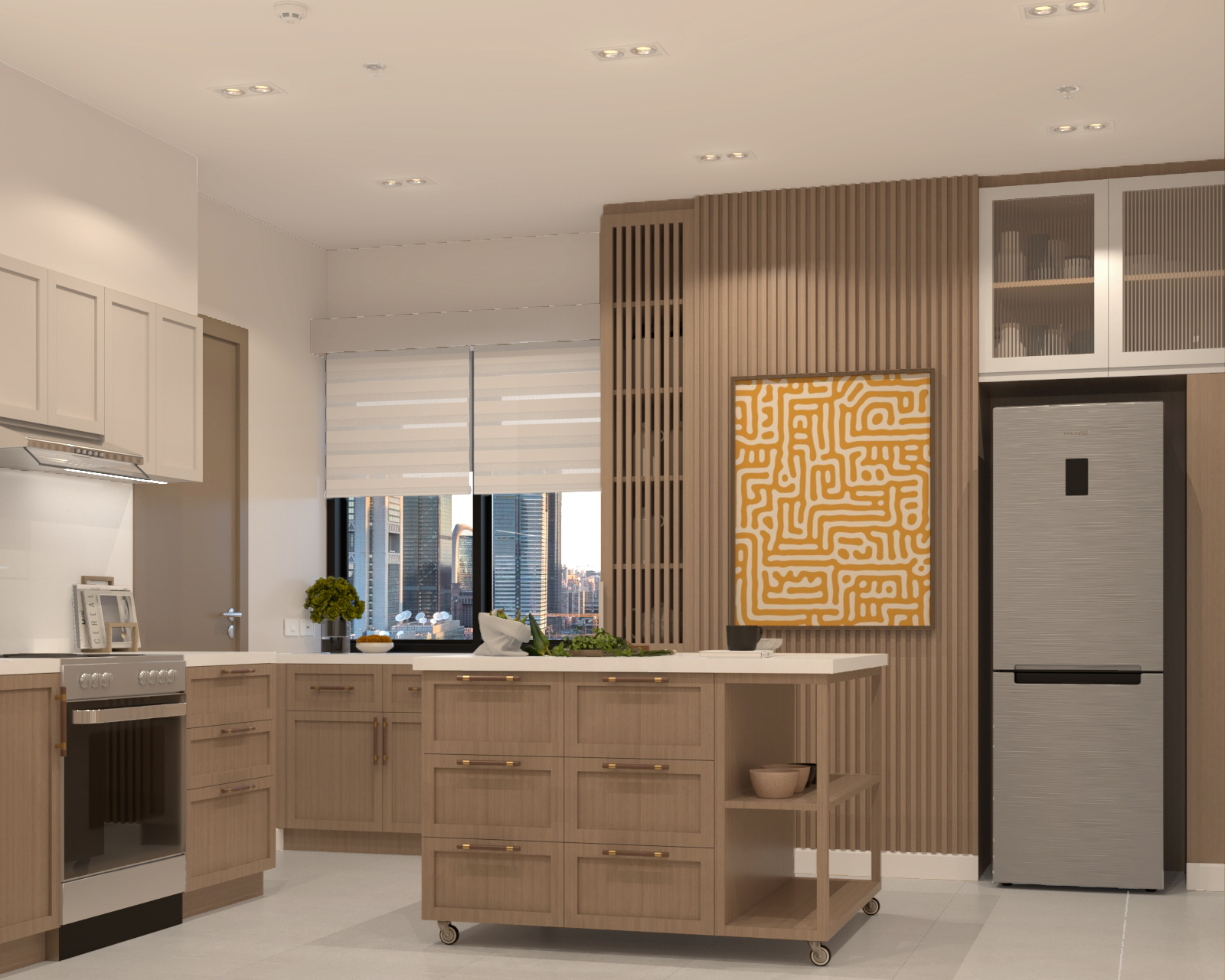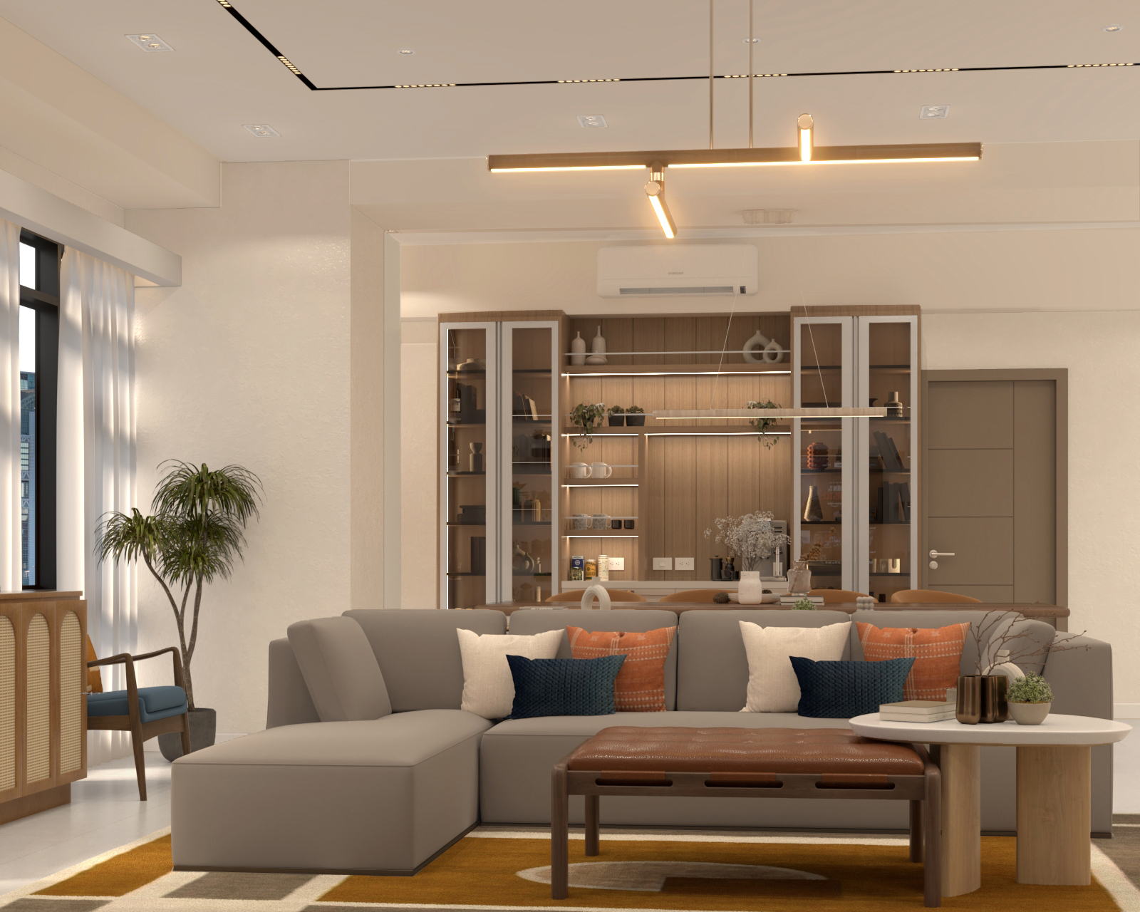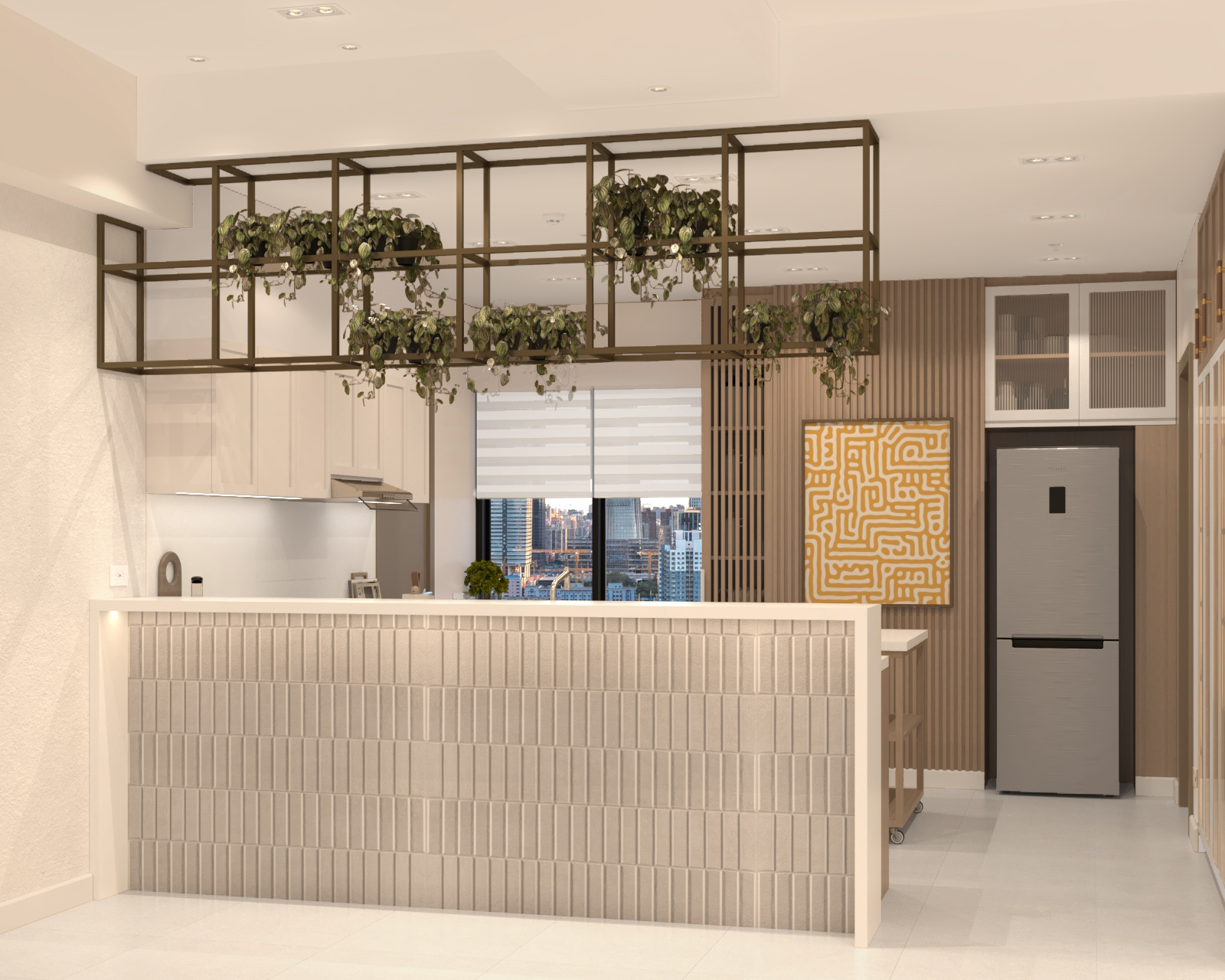This penthouse was designed for a couple who loves plants, reading, and hosting intimate gatherings. Light hues, warm wood tones, and an open layout create a bright and welcoming space where relaxation meets connection. The spacious sofa and dining area invite moments of comfort and conversation, perfectly reflecting the couple’s laid-back yet refined lifestyle.